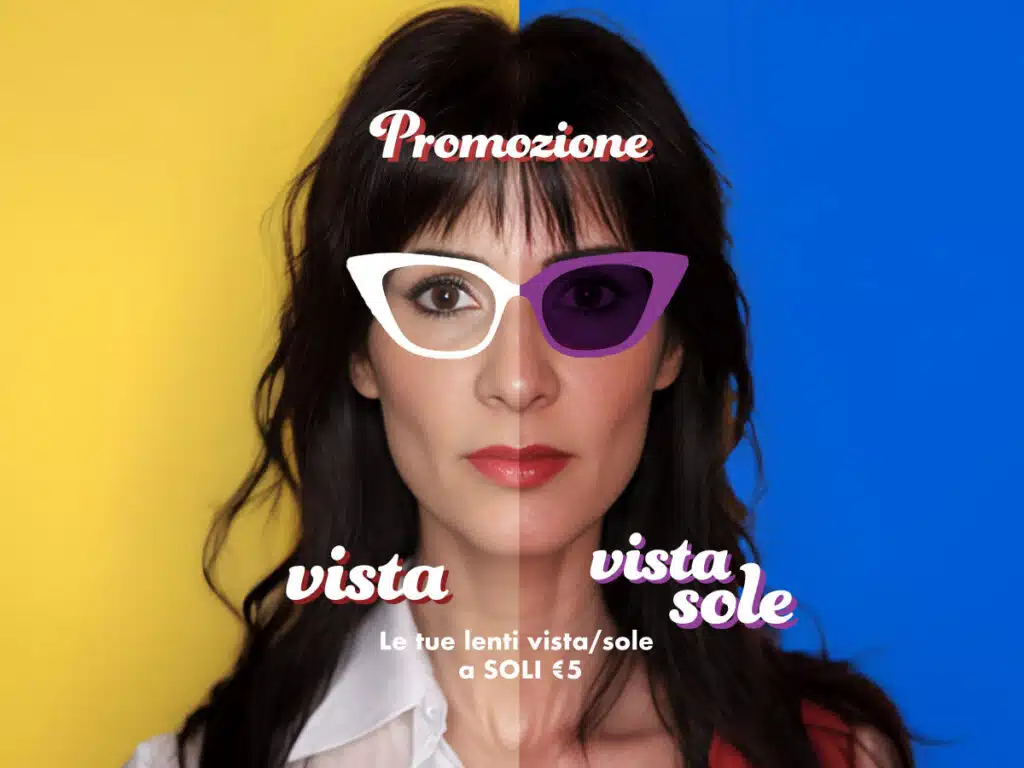 Dal 12 aprile al 21 giugno, acquistando un occhiale da vista completo con lenti antiriflesso, potrai scegliere una seconda montatura e avere le lenti vista-sole a soli 5 euro!